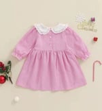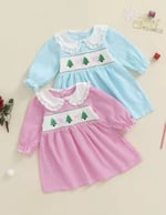 Beautifully embroidered with Christmas trees and bows, featuring a sweet ruffled collar and long sleeves for cosy comfort โ perfect for festive photos, parties, or Christmas Day itself!